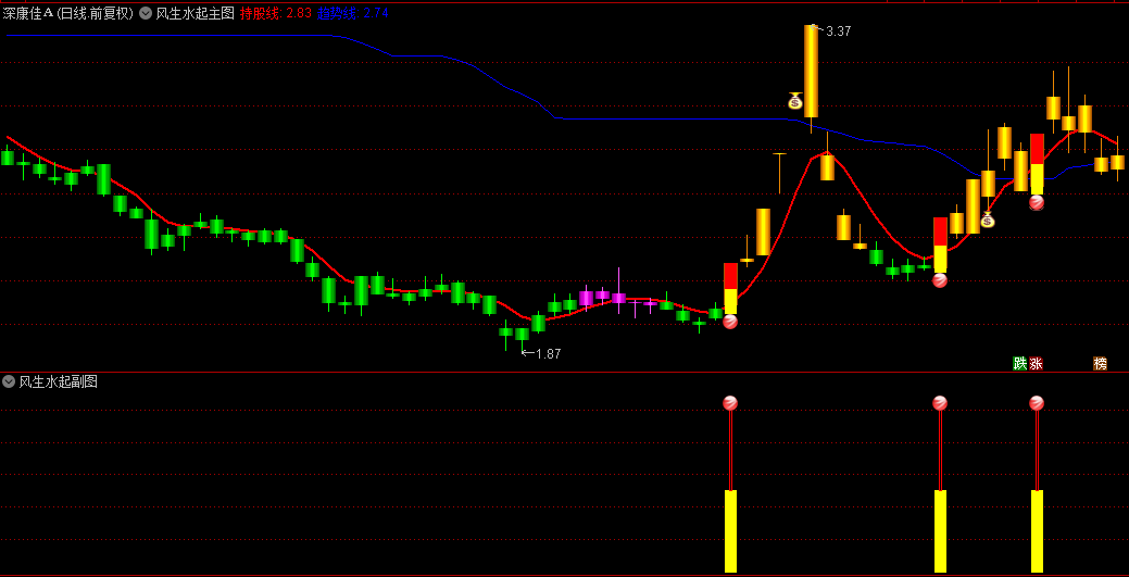8、两个信号指标,分别为:"红色圆球、钱袋子"信号。
