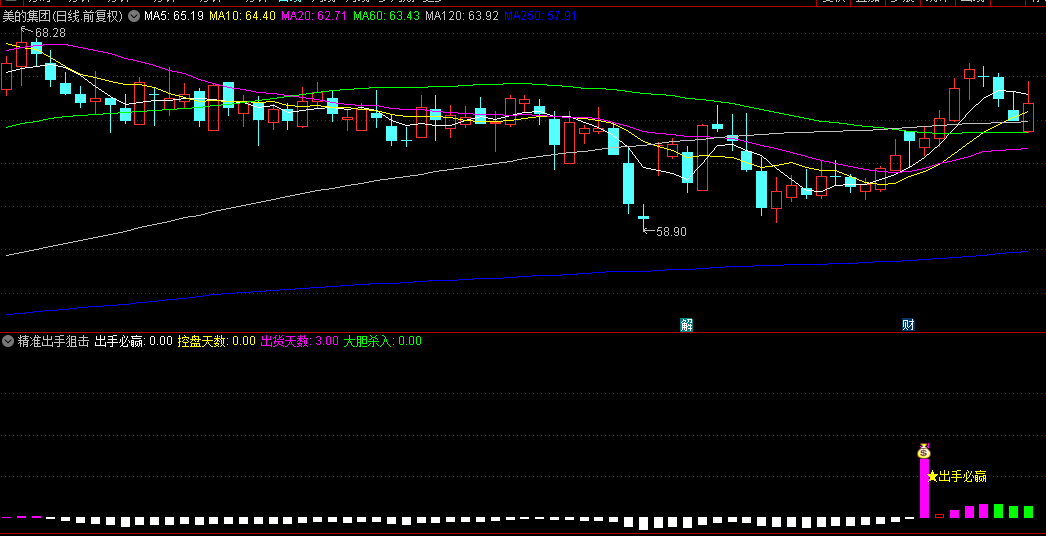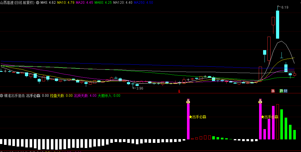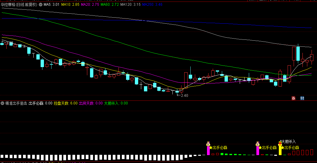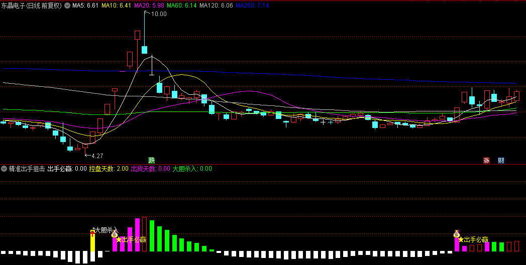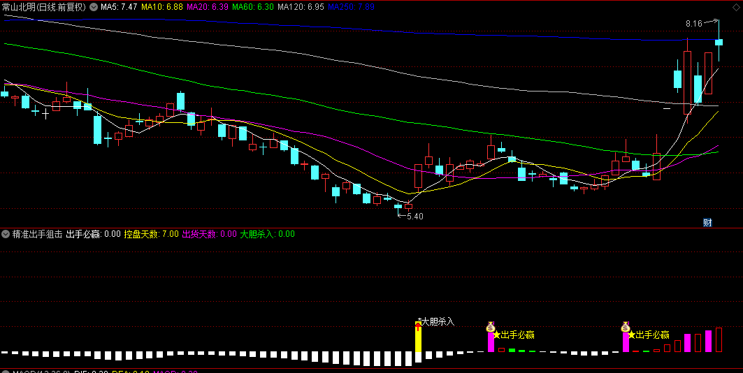 5、“精准狙击”首控信号:作为本指标的核心亮点,“出手必赢”首次触发,即是向投资者宣告第一次明确控盘信号的到来,是捕捉妖股启动初期、实现利润最大化的黄金机会。