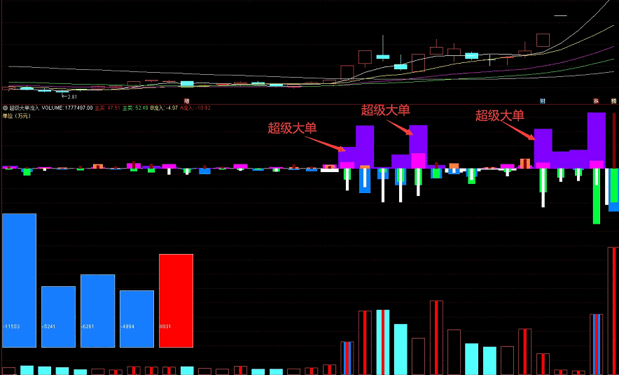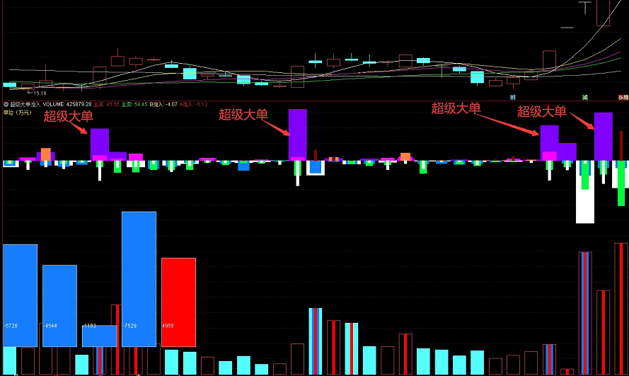 妖股必备【超级大单流入】副图指标,超级大单,大单,中单,小单,当日和历史流入流出!