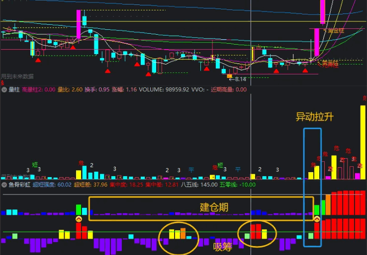 用法三:当集中度和超短强度双减时,是我们离场的实际,意味着主力是真出货或洗盘,待彩虹副图在此呈现黄红或以上时再行入场,有时候就是回马枪。