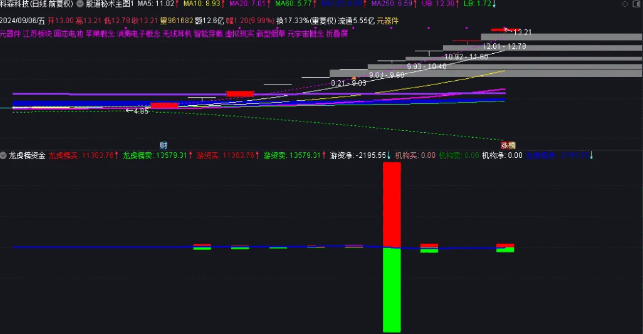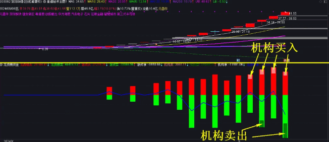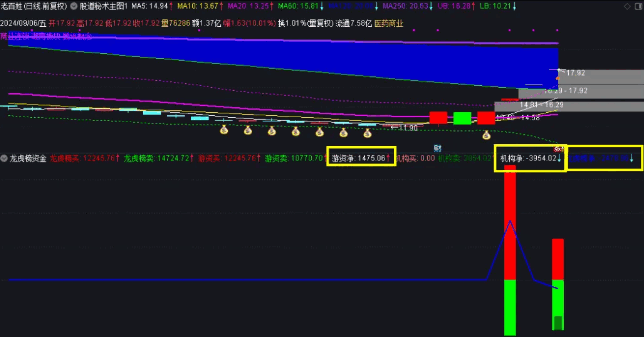 只要龙虎榜有机构席位都能显示机构金额,没有机构席位的话,那么龙虎榜代表全是游资金额,副图指标上方也能显示游资净额和机构净额,副图中的蓝线代表龙虎榜净额,因为机构一般很少上龙虎榜,没机构席位上榜的话,它也代表游资净额。