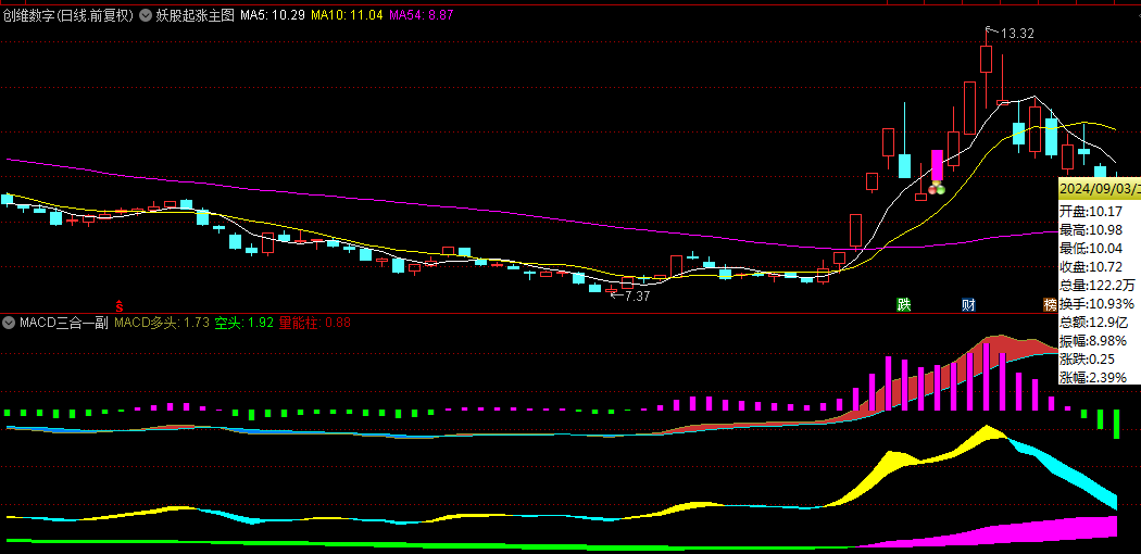 股海探秘【妖股起涨】主图/副图/选股指标,融合MACD多元共振,精准捕捉妖股启动瞬间!