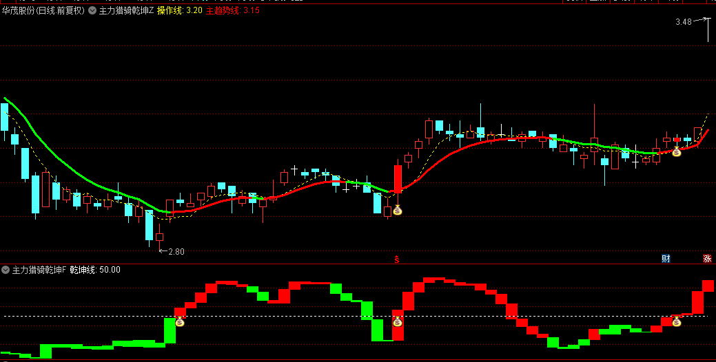 4、三剑合璧,主图红线遨游、副图红柱挺立、乾坤线之上翱翔,共绘“钱袋满盈”之买入奇景,单一信号不足以触发此等机遇;