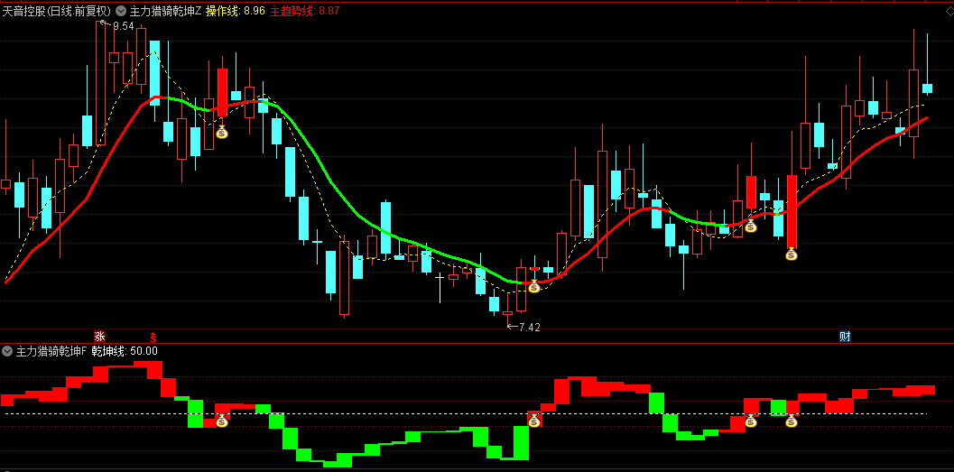 【主力猎骑乾坤】主副图指标,双剑合璧,乾坤穿越红界,黑马捕手精准无误!