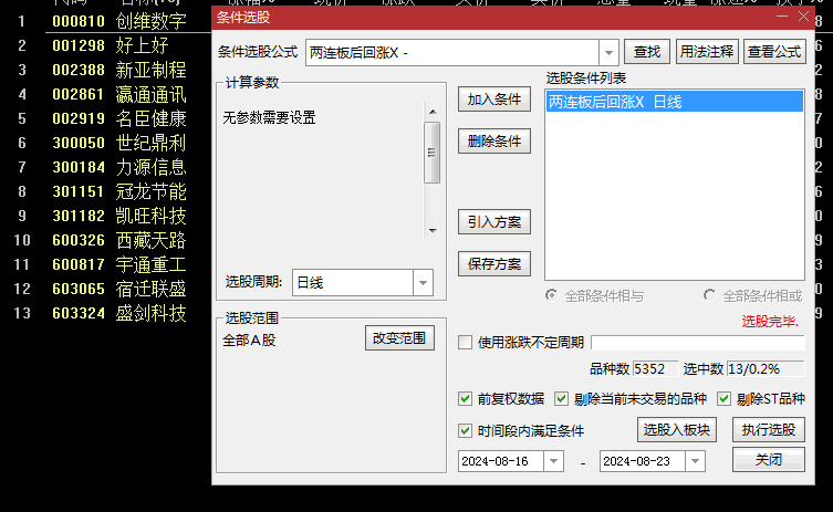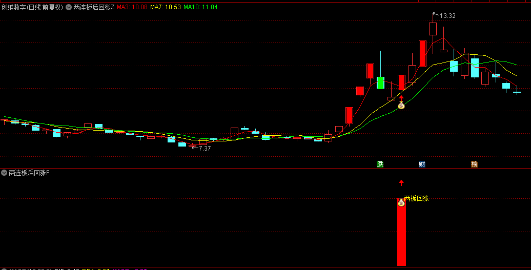 今选【两连板后回涨】主图/副图/选股指标,识别连续两日涨停后的回调窗口,涨停板后出信号!