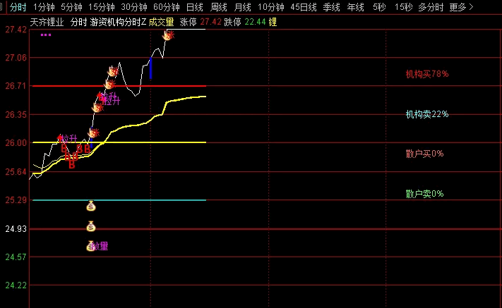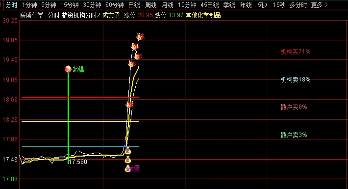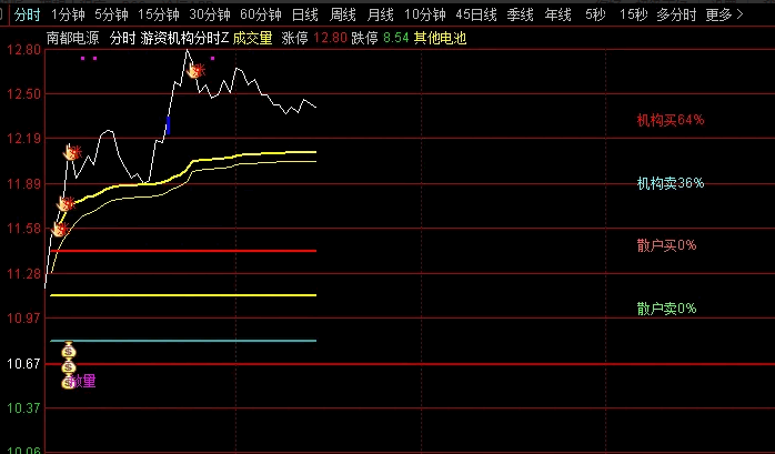 分时机构操盘,是一个分时主图指标;添加了买点、拉升、起爆、放量、突破、机构\散户买卖比等信息,可作为高抛低吸的小助手进行参考。