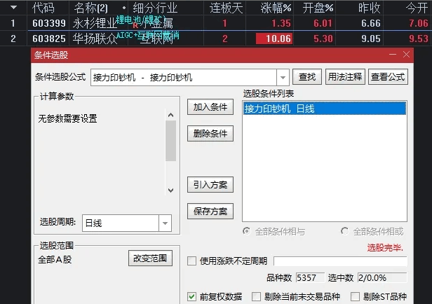 接力印钞机 竞价副图/选股、可排序指标: