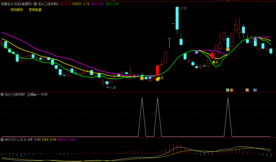 “笑颜”标识,预示着三线完美汇聚,共鸣之声响彻市场,正是出击良机。无未来!