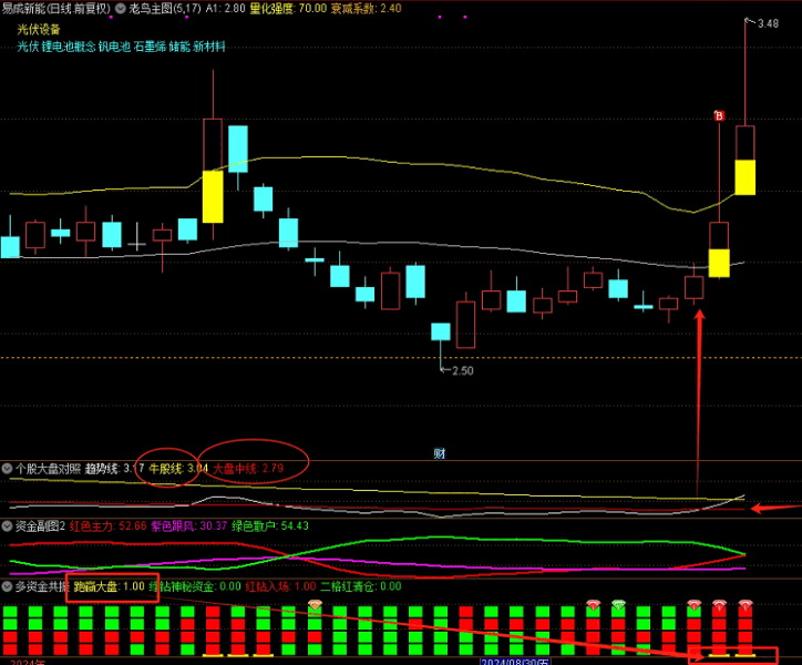 另外本指标很简单可以和其它指标合并,图中的最下方自用资金共振最下方一行黄色就是跑赢大盘,喜欢的下载,不喜欢的绕道请勿拍砖,谢谢大家的支持,另外下载后记得推荐。
