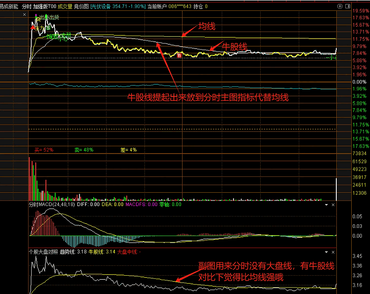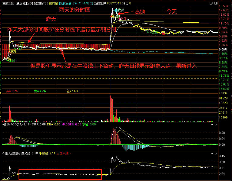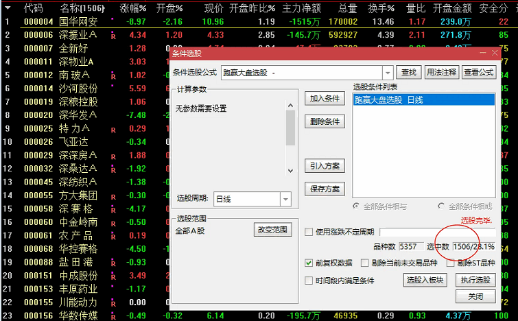 一个股票如果连大盘都跑不赢,谈何拉升,谈何走出牛股,本指标就是用个股对照大盘强弱,挑选出强于大盘的股票,并不是说选出来的股票一定会走出牛股,但要走出牛股就一定要先跑赢大盘, 这是必经之路,相当于我要挑选未来的大学生,这个跑赢大盘指标相当于高中,有上高中的同学不一定能考上大学,但考上大学的一定先读过高中,发图为这两天本人实盘,请配合其它指标应用,我自已是用它做初级股池,还有用来做分时指标,别人用大A5000多只股票,我是直接用它压缩至1500多只,直接压缩至28%,还不用担心牛股会跑掉。