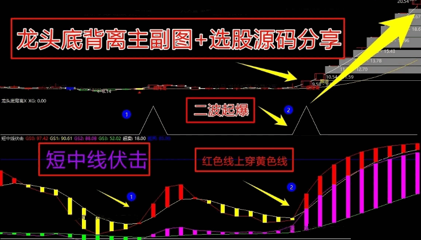 【龙头底背离】主图/副图/选股指标,筑底蓄势,涨停曙光初现,专为波段低吸设计!