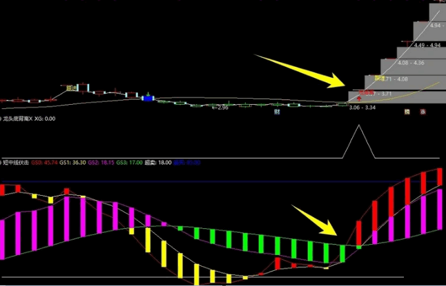 短中线结合:利用辅助视图中的色彩与线条变化,灵活调整持仓周期,红色线上穿黄色线时积极介入,紫色与红色柱子的强势表现则进一步确认上涨趋势,适合波段操作的投资者。