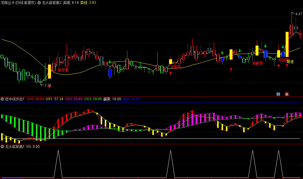 领袖底部背离主视图:直观展示底部背离现象,结合跟庄信号,让投资者一眼洞悉主力动向,精准把握市场底部反转的先机。