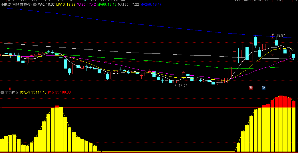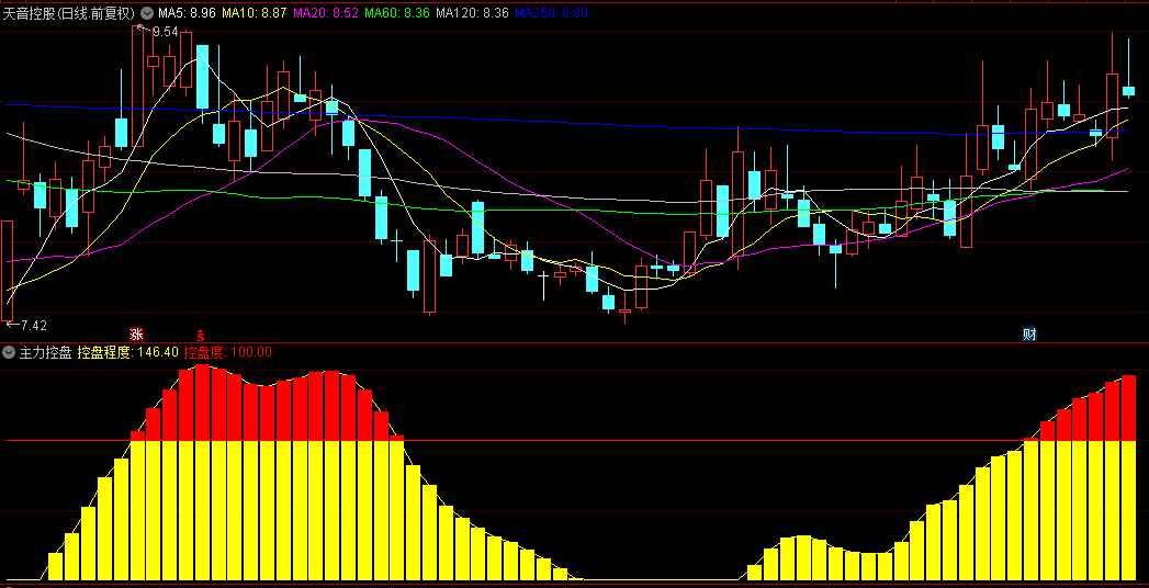 【主力控盘】副图指标,根据颜色确定控盘程度,控盘度小于前一天变色,一目了然!