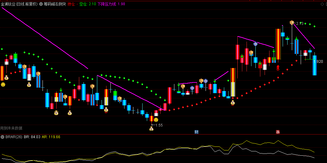 本主图指标精心构建,严格遵循右侧交易的核心理念,专为捕捉股价自下方强势穿越筹码密集区、即上方压力线之际的买入机会而设计。