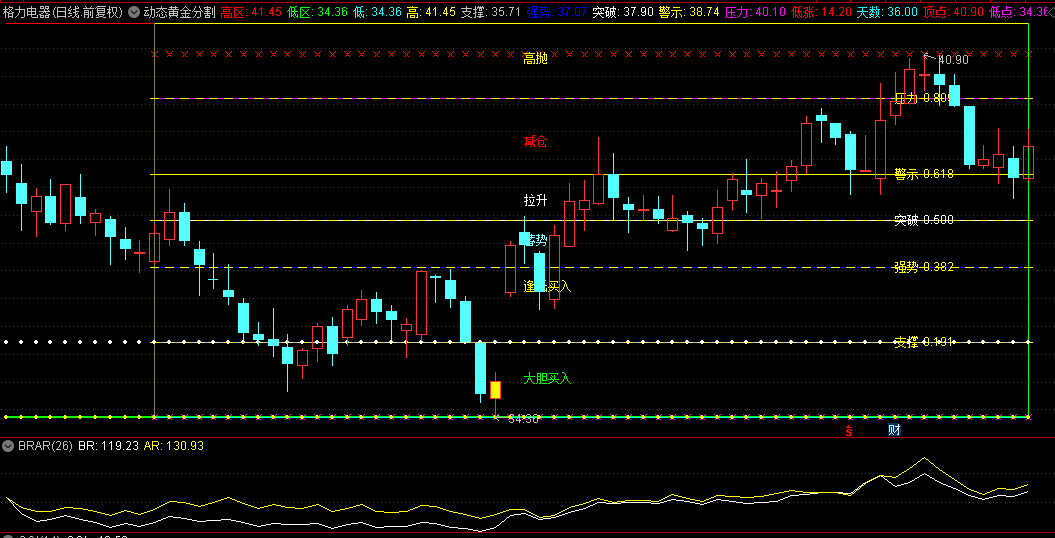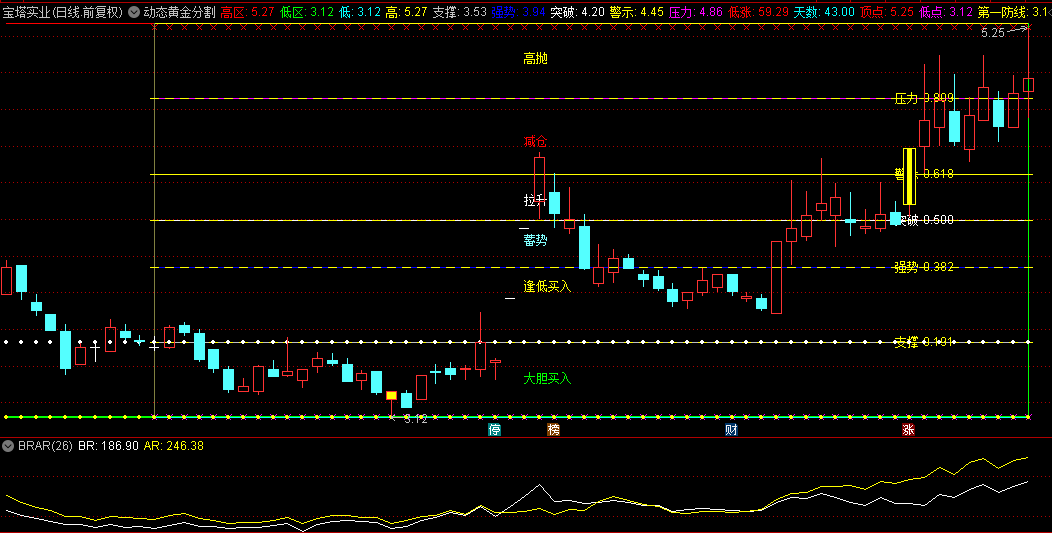 该高级主图指标巧妙地利用了过去N个交易日内的最高价与最低价,依据古老而精准的黄金分割原理,自动绘制出一系列具有深刻市场意义的分区线。