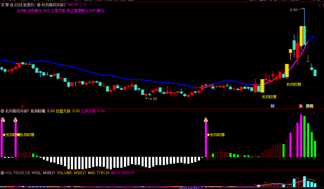 上车时机的精准把握:当主图与副图上的机构吸筹信号形成强烈共鸣,即出现所谓的“机构吸筹共振”时,这不仅是市场资金正加速向该股汇聚的明确信号,更是投资者应果断介入的宝贵时机,即“上车点”。