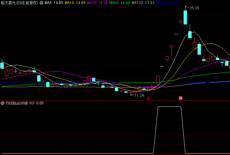 2、大阳线强势突破:当市场以一根涨幅超过5%的大阳线作为信号,强势穿透上述密集均线区域时,这不仅是市场情绪的集中释放,更是股价即将进入起涨阶段的明确标志。值得注意的是,这根大阳线的收盘价应落在三条均线均价的4%至15%区间内,这一区间被视为起涨阶段最为理想的介入点。