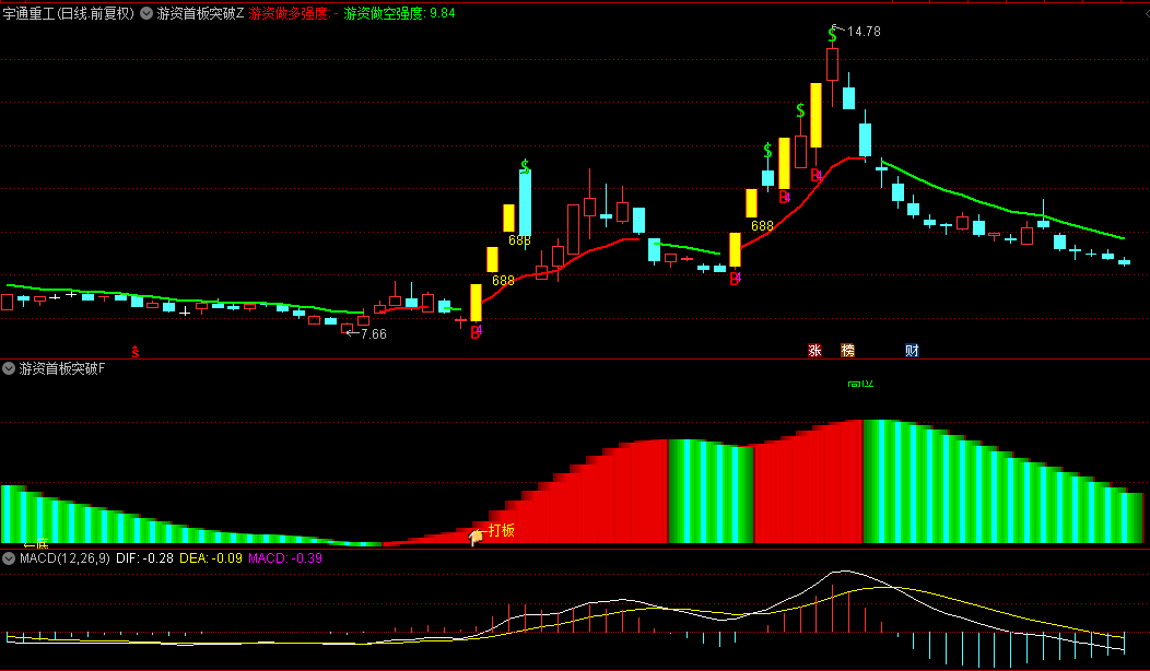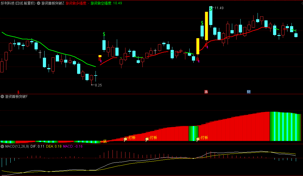 主图则是捕捉交易时机的关键所在。当首板强势突破,主图上跃然出现“B”信号时,这即是明确无误的打板买点提示。