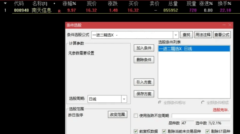 此竞价优选策略,其核心在于利用9:25分这一关键时间节点后的市场数据,进行快速而准确的选股操作。