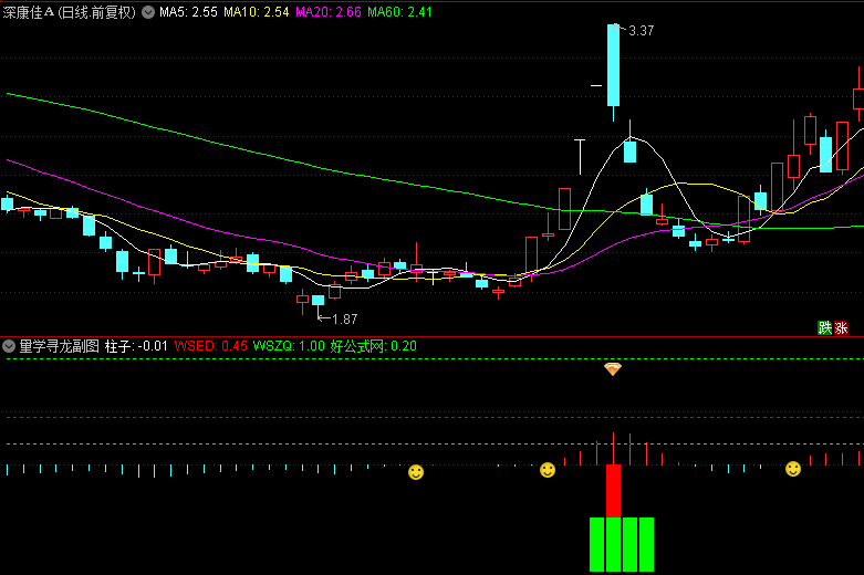 1、出现"笑脸"信号,可低吸关注,类似MACD红绿柱,红柱持有,绿柱卖出;