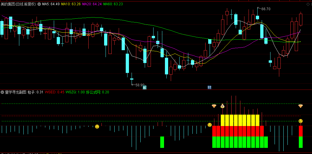 "量学寻龙"又名"寻龙红绿灯",作为判断强势股参考信号;