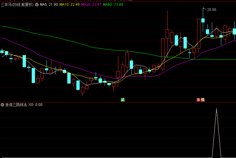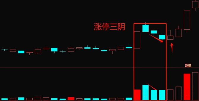 涨停三阴指的是涨停首板出现之后,股价连续回调后的买点: