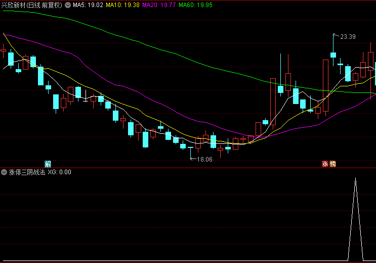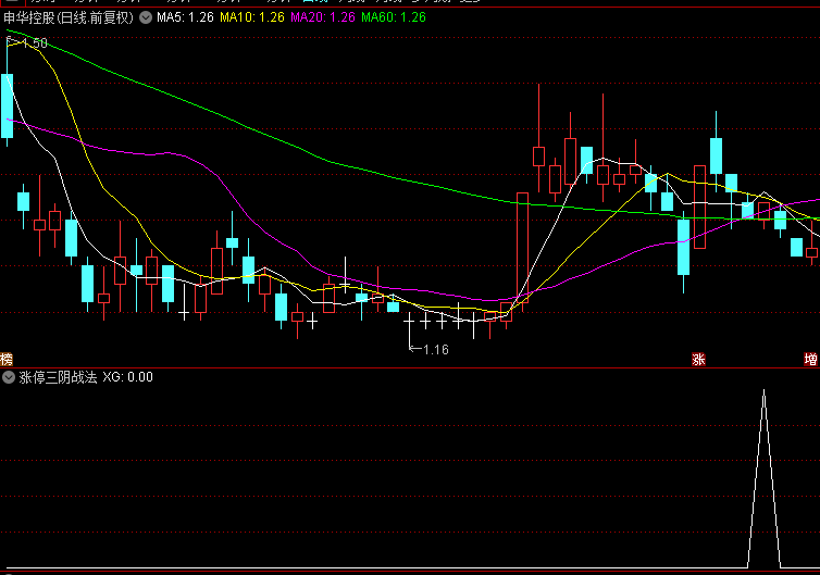 出现涨停后的回调三连阴,并不能确认是回调到位,还需要一根阳线的确认,当三连阴次日,收出一个放量的阳线,这个时候是确认信号的时候;
