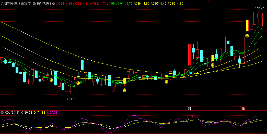 尤为值得一提的是,【神彩飞扬】指标中特别加入了“股经叠彩线”这一创新元素。