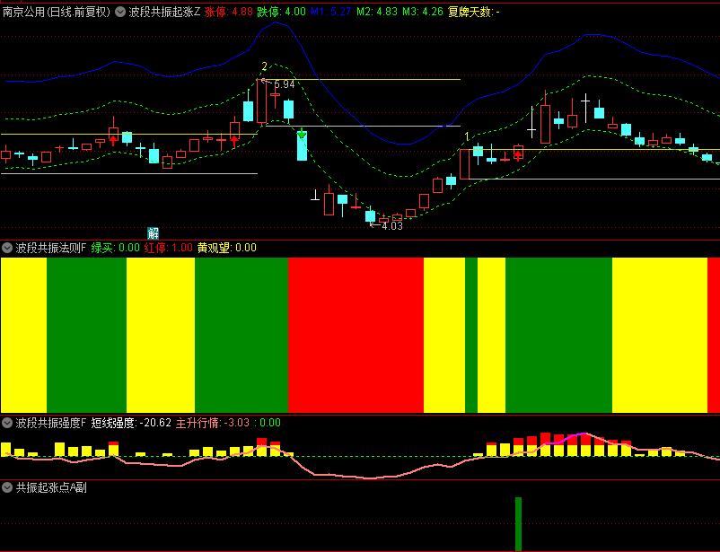据说是来自某机构的内部指标,总共包含了波段共振起涨Z主图、共振起涨点A副图、共振起涨点B副图、波段共振法则副图、波段共振强度副图五个指标。