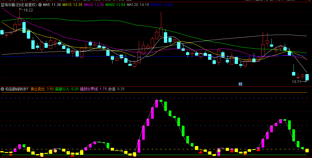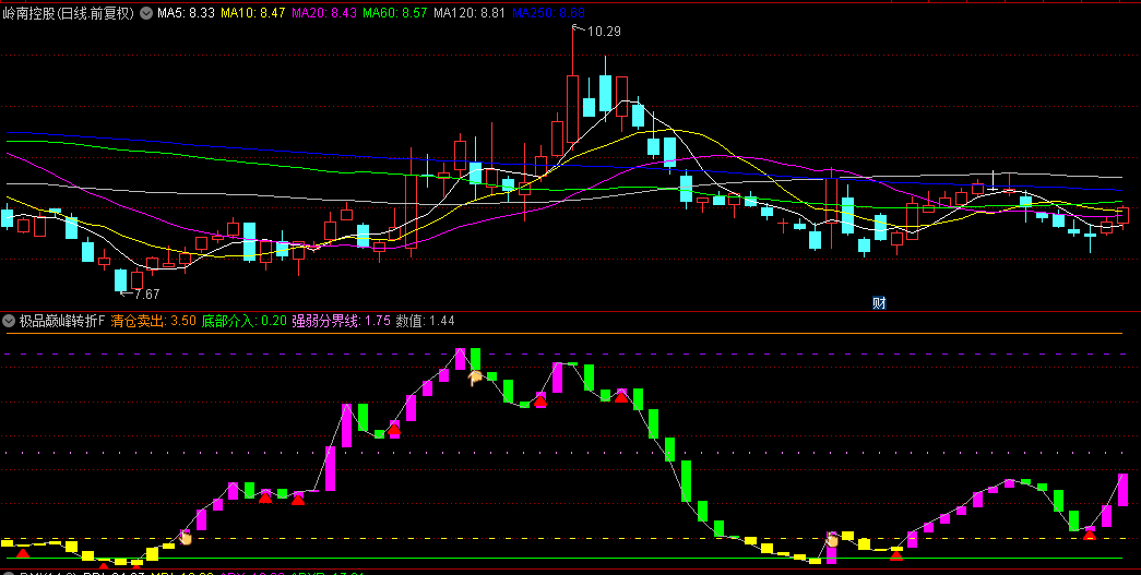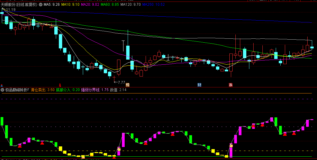 通达信【极品巅峰转折】副图与选股指标,触及阶段底部,红色三角明确指示买入时机!