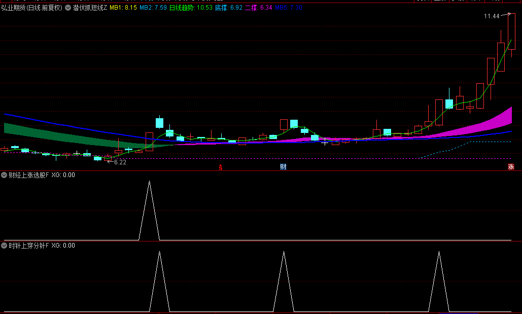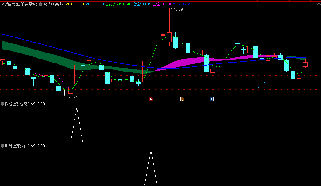 花钱买的,潜伏抓短线主图副图和选股指标,总共十个指标,包括主图、副图、选股,用来抓波段强势股。