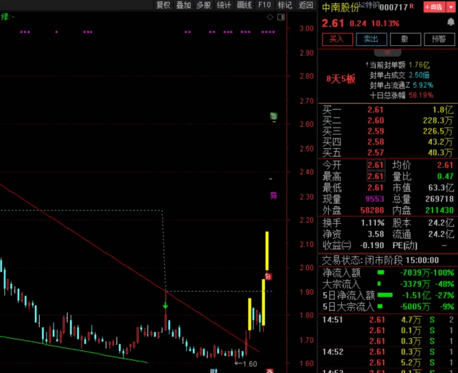 最后:妖股类似深圳华强,大众交通等不是指标选出来的,是消息面,技术面,人气面,合力面等等等各种因素边走边看不知不觉走出来的,现在2级市场无非就是先手吃肉后手买单,有认知的赚无认知的!指标只是一个参考辅助工具,逻辑为王!同样kdj最基本的指标也有人能用他稳定盈利!提前祝各位老铁国庆快乐!!!财源广进!!!