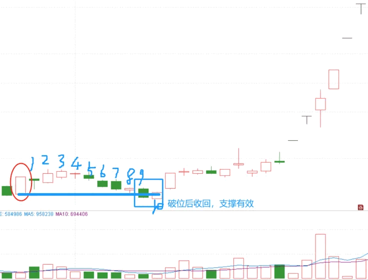 细节洞察:破位线形态虽多变,但十字星或纺锤线较为常见,其实体跌幅应严格控制在5%以内,以防性质转变,影响多空格局判断及后续操作策略。