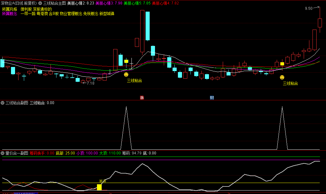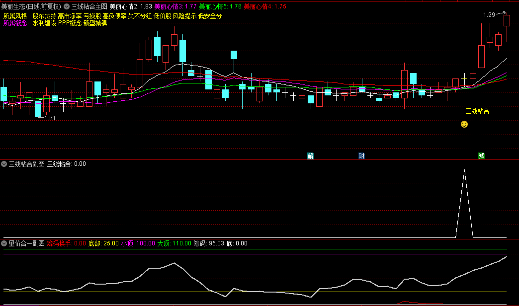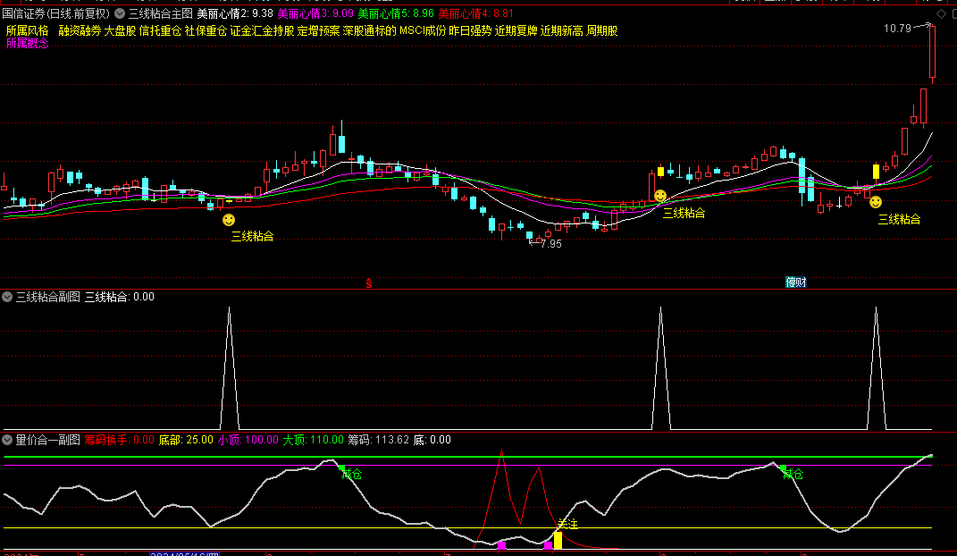 最近网络上很火的【三线粘合】主图+副图+选股指标,同时附送一个量价合一副图指标,辅助你潜伏涨停、抓短线波段强势股!