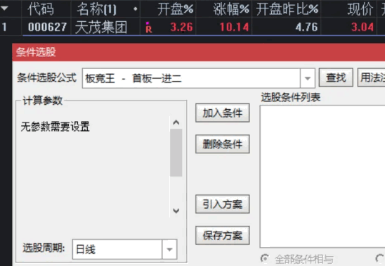 接下来,竞价阶段需满足的条件有:竞价量比超过4、竞价换手率超过1、竞价涨幅介于3%至9.9%之间。