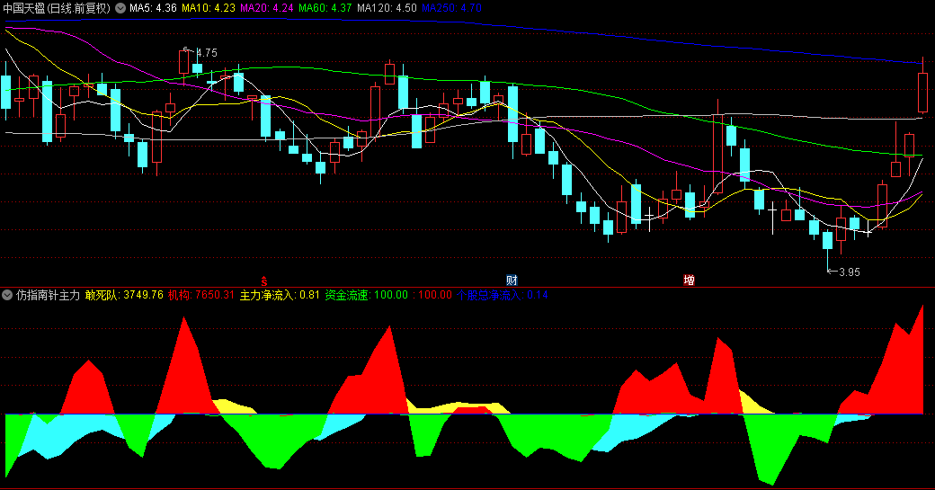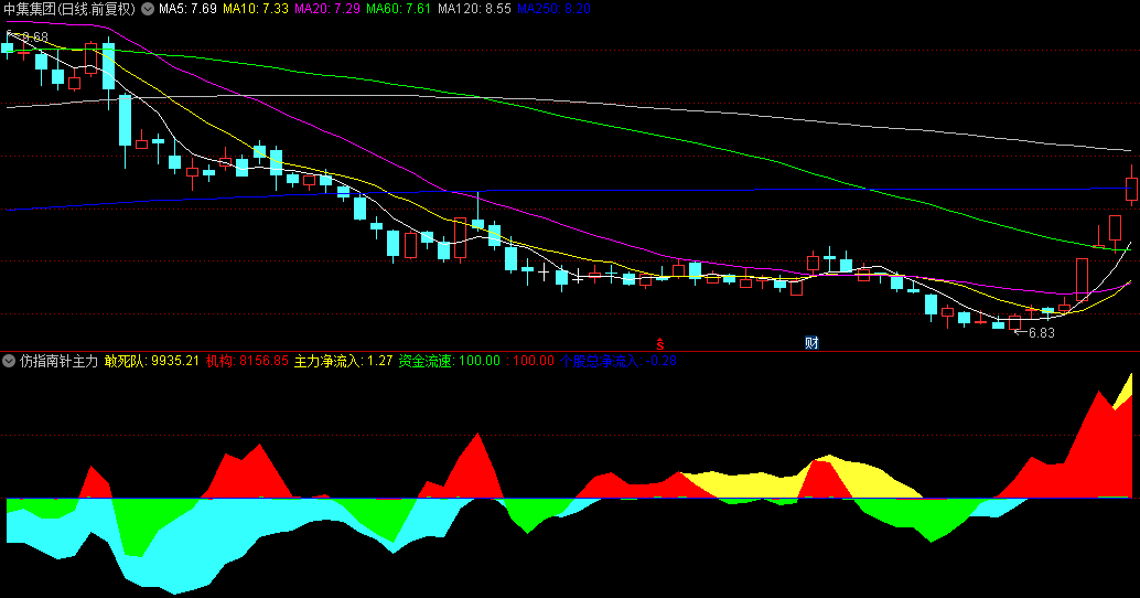 网上的指南针主力资金很火的,但咱们小散消费不起,于是自己仿制了一个,基本上有九成相似。