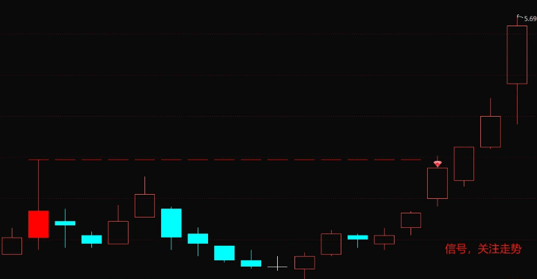 而当股价成功穿越该倍阳锤头K线时,系统会点亮红色钻石标志,此即入场信号;