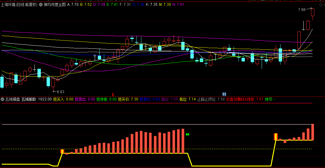 【五域操盘】副图指标,短买入,短卖出,收盘划横线,看持股还是持币!