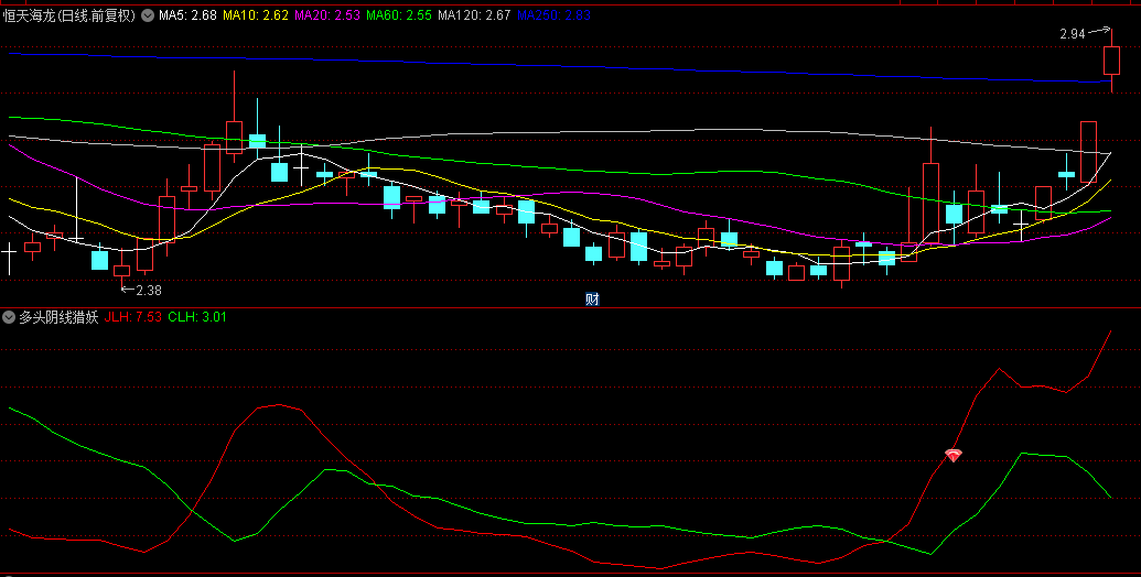 在多头氛围中,此类反常行为往往预示着股价将迅速飙升,至少触及涨停,即便未能如愿触及涨停,鉴于买入点位于多头趋势中的阴线位置,风险亦相对可控。