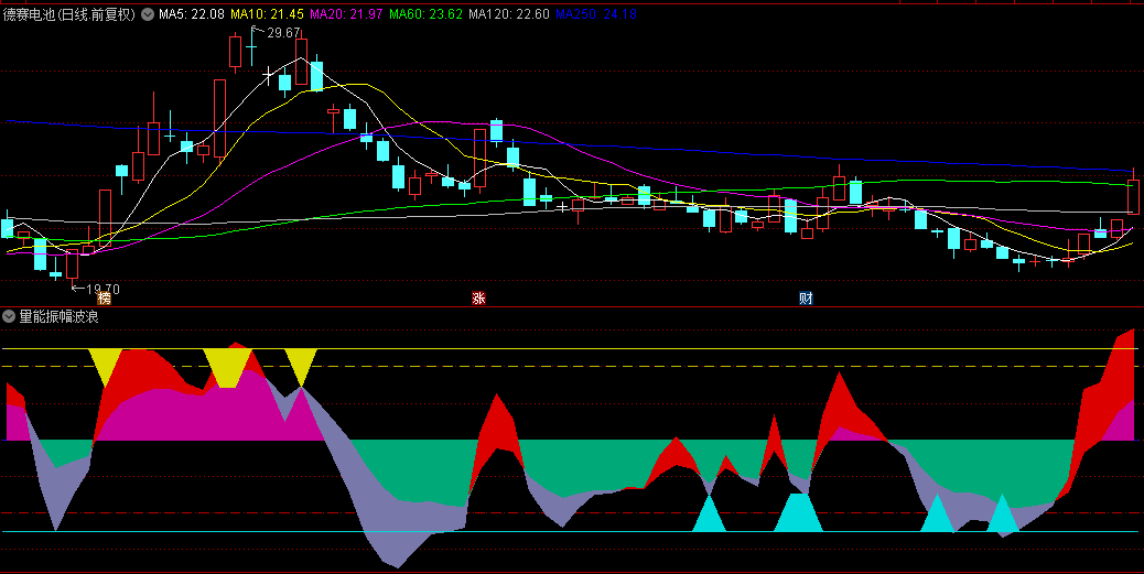 原创【量能振幅波浪】副图指标,红色波浪要上升,蓝色波浪要下跌!