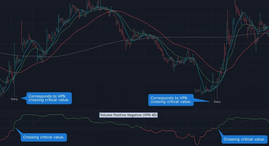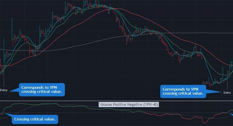 VPN指标计算了上涨日成交量与下跌日成交量之间的差异,并将其除以总成交量。当某日的典型价格(即最高价、最低价和收盘价的平均值)高于昨日的典型价格加上1/10的ATR时,该日被视为上涨日。下跌日的定义则相反。结果乘以100并用3日EMA平滑处理。