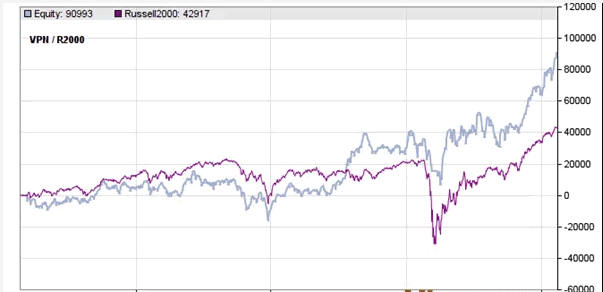 VPN在交易系统中的表现如何?当我测试一个新的指标时,我通常首先使用一个简单的系统,不带任何过滤器或附加功能,以确定它是否具有预测能力。但这并不是作者的做法。为了测试VPN,他设计了一个包含2000只股票的投资组合系统,规则如下: