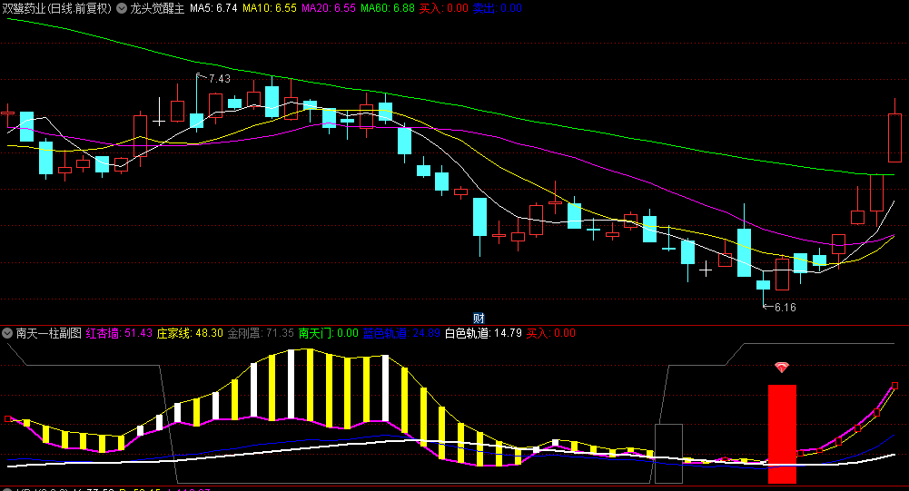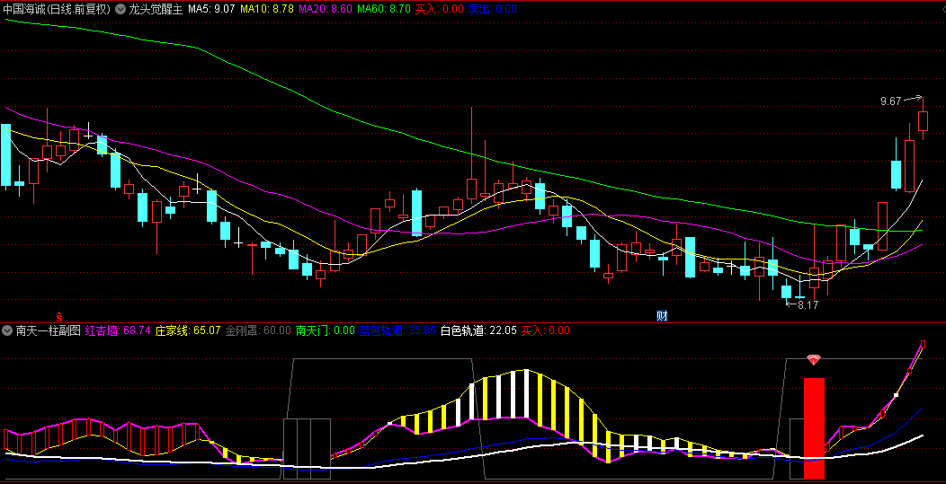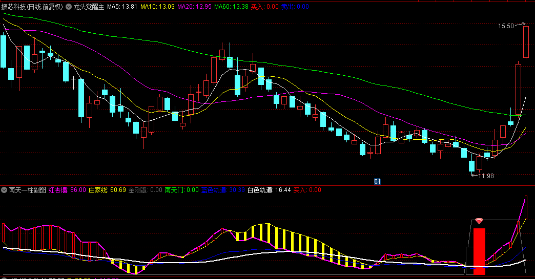 今选【南天一柱】副图/选股指标,金刚罩与神龛护佑着,首次出红色柱体是买入基本条件!