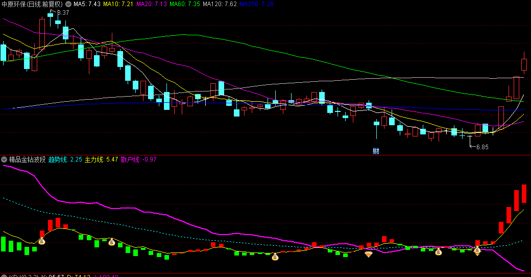 而在指标中,“波段钻石信号”更是熠熠生辉,成为我们把握市场节奏的关键。无未来函数!