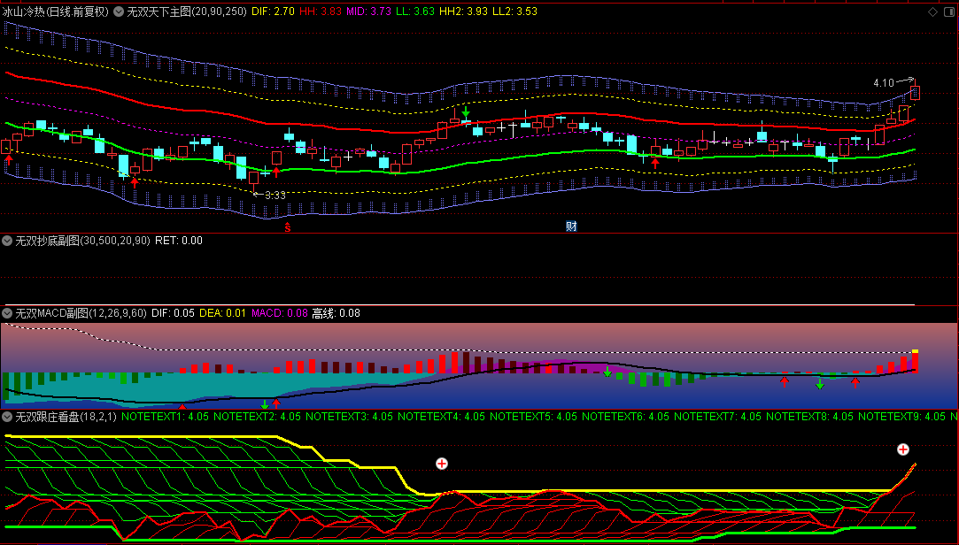 最后,“无双跟庄看盘副图”,它仿佛透视镜,让我们透视庄家动向,跟庄操作,游刃有余。