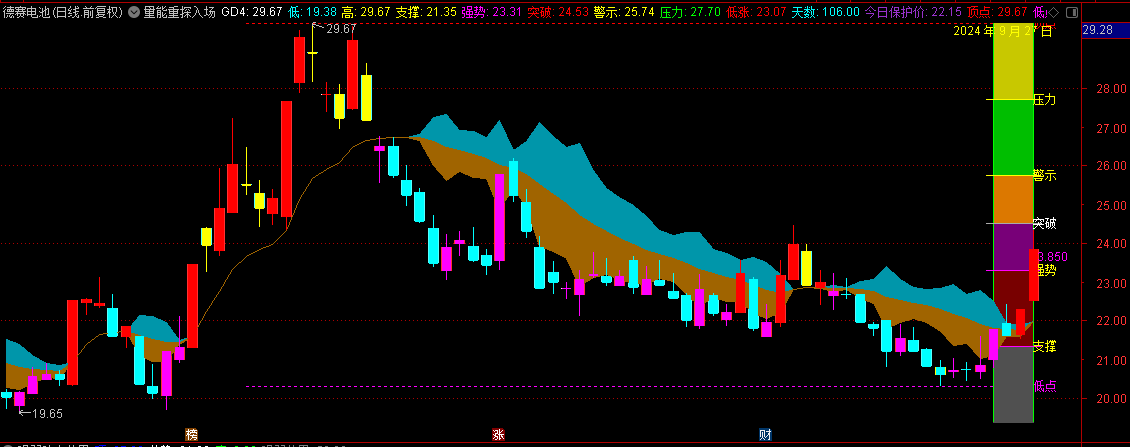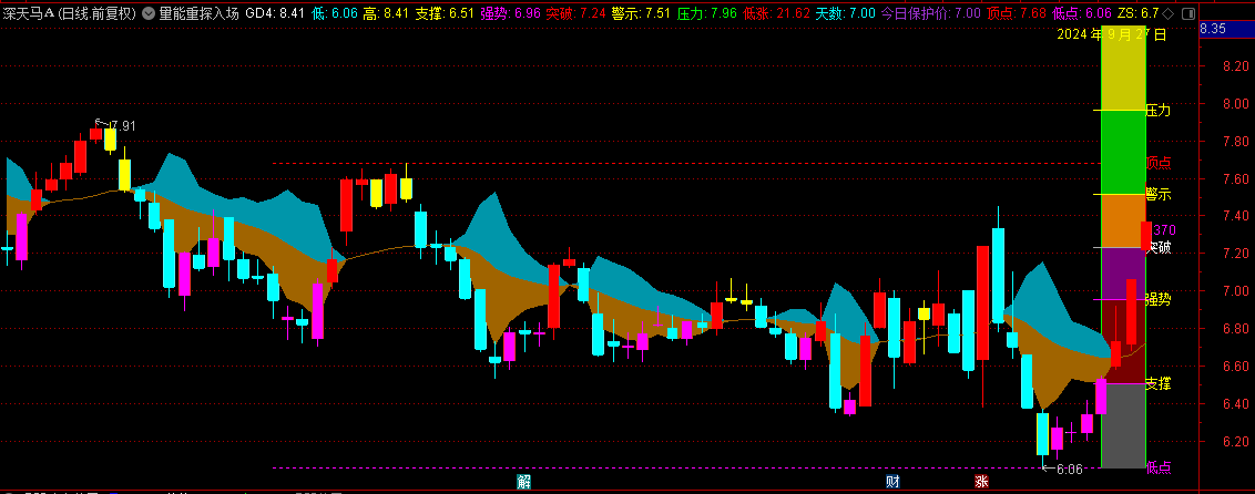 这款指标的设计,将股价的运行轨迹巧妙地划分为五个关键阶段:支撑、强势、突破、警示与压力。