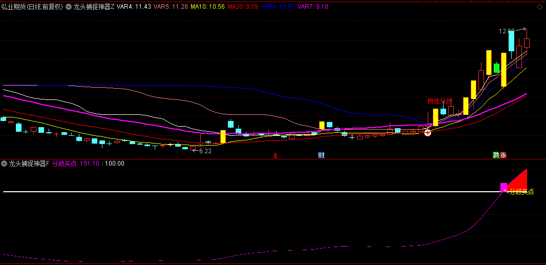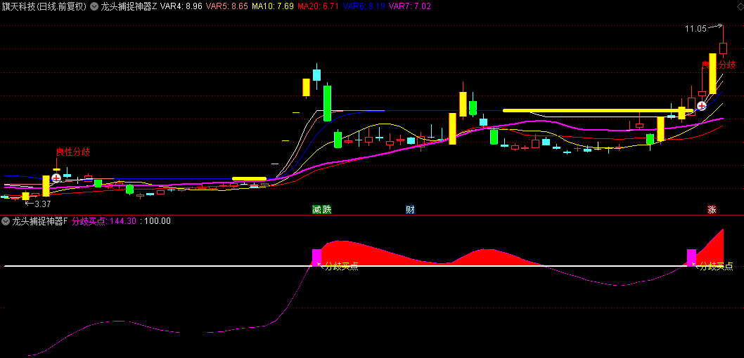 此指标专为捕捉龙头股设计,通过对成交额的精准分析,筛选出那些具有强大市场号召力、成交额巨大的龙头股。在这些股票中,我们的指标能够更准确地捕捉到买点的出现,从而提高交易的成功率。