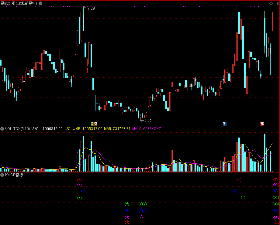 DRAWTEXT(K顶背离,IF(ISLASTBAR,27.5,29),'(×)'),LINETHICK2,COLORRED;