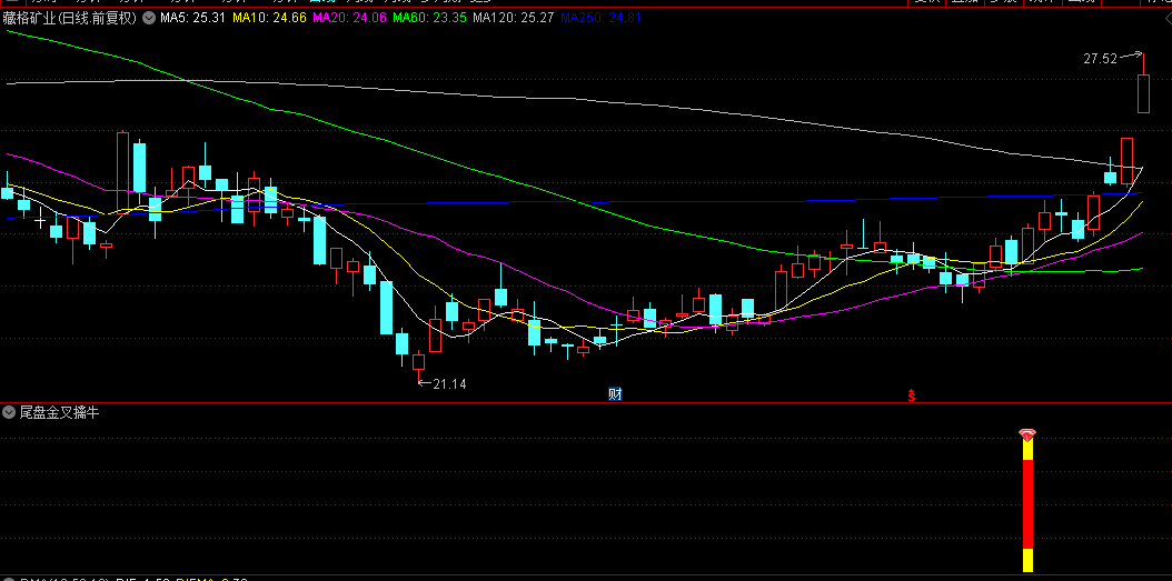 值得一提的是,“尾盘金叉擒牛术”完全摒弃了未来函数,确保了指标的客观性和准确性。它依据市场实时数据,通过独特的算法,精准计算出股票的买卖点,让投资者在纷繁复杂的股市中,找到一条清晰的投资路径。